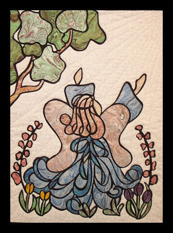 Marbled green fabrics and bright pastels create an enchanting garden around this heavenly creature. Her hands stretch towards heaven where rays of light shower down upon her. Beautiful curves flow around her as she lifts her praises of thanksgiving. The colors of the angels gown may be altered to honor your own special one.�19� x 25�