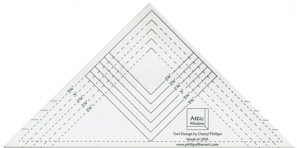 One tool creates six sizes of Attic Window blocks and comes with an eight page booklet. With no Y seams, this is the easiest attic window youll ever make. The tool offers a preview window area to make fussy cutting easy.