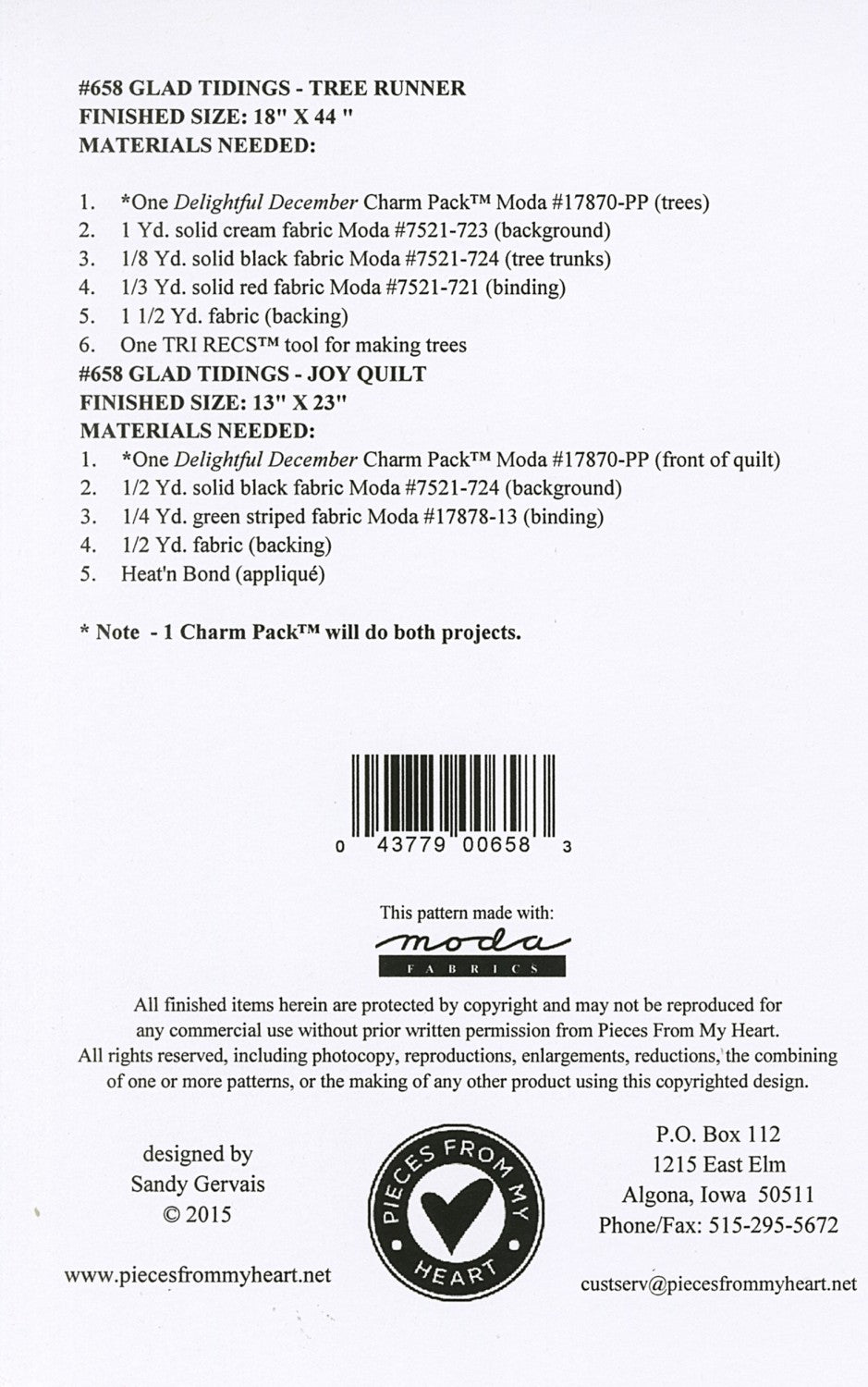 This runner and small quilt will add to the holiday feel. One Delightful December Charm Pack and extra fabric will make both projects. Heat n' Bond is used for applique