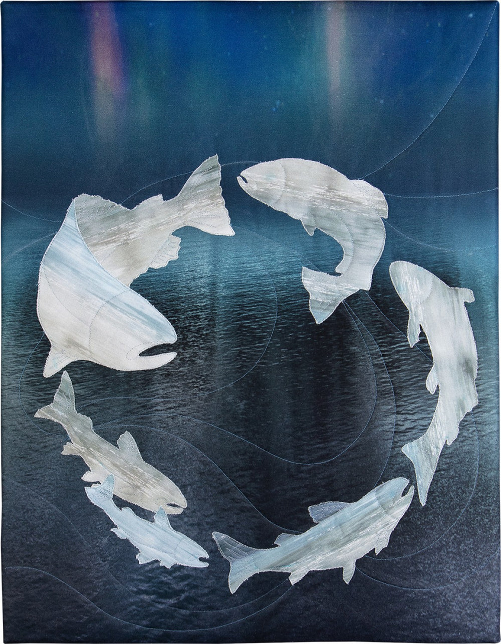 Simple and beautiful beginner applique pattern. Finished quilt block measures 14in x 18in, intended to be mounted on canvas. Made with Painted Forest digital fabrics by McKenna Ryan and other Hoffman fabrics.