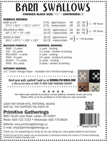 Barn Swallows Quilt Pattern is backordered and will ship as soon as it is back in stock.