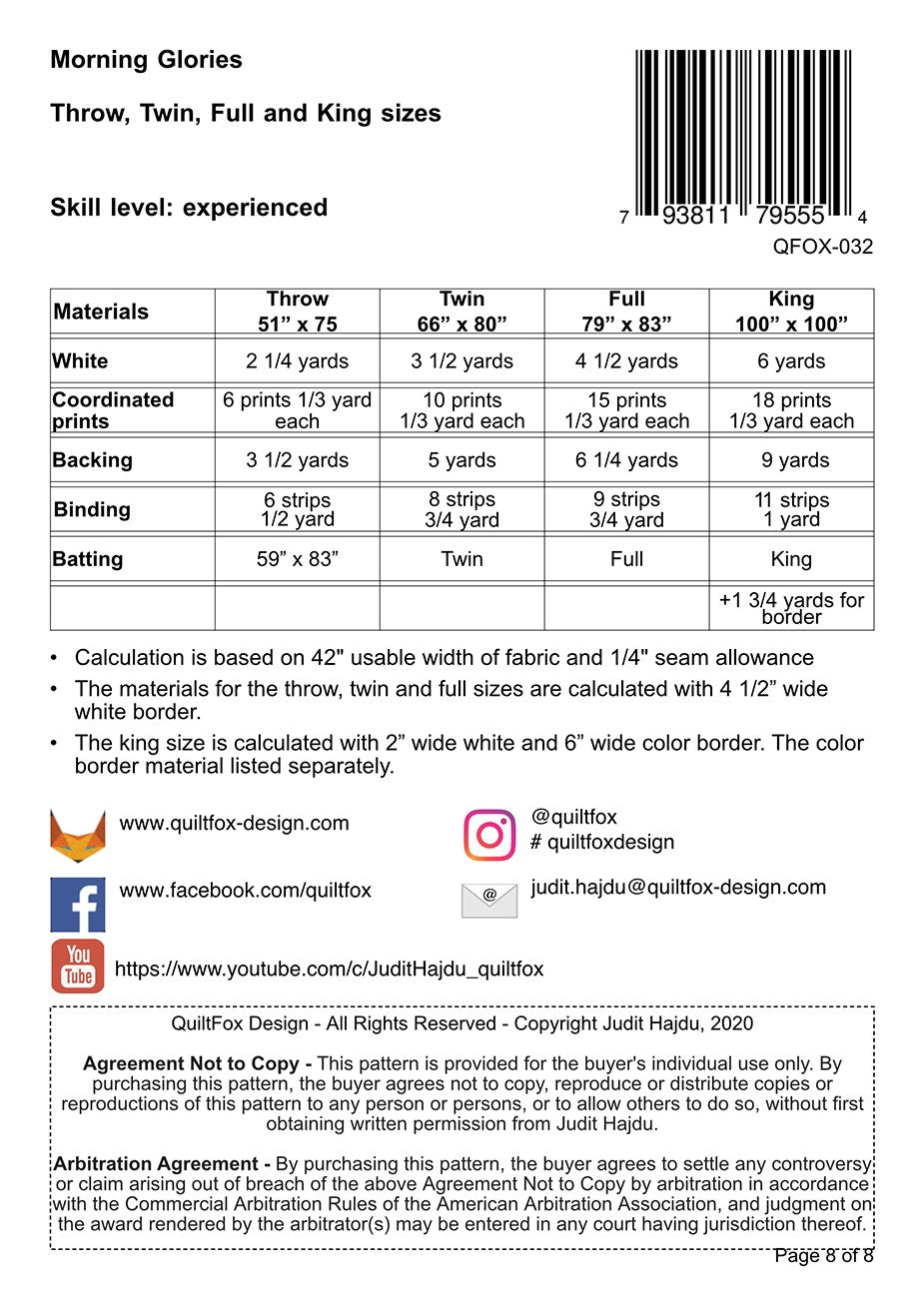 Morning Glories Quilt Pattern is backordered and will ship as soon as it is back in stock.