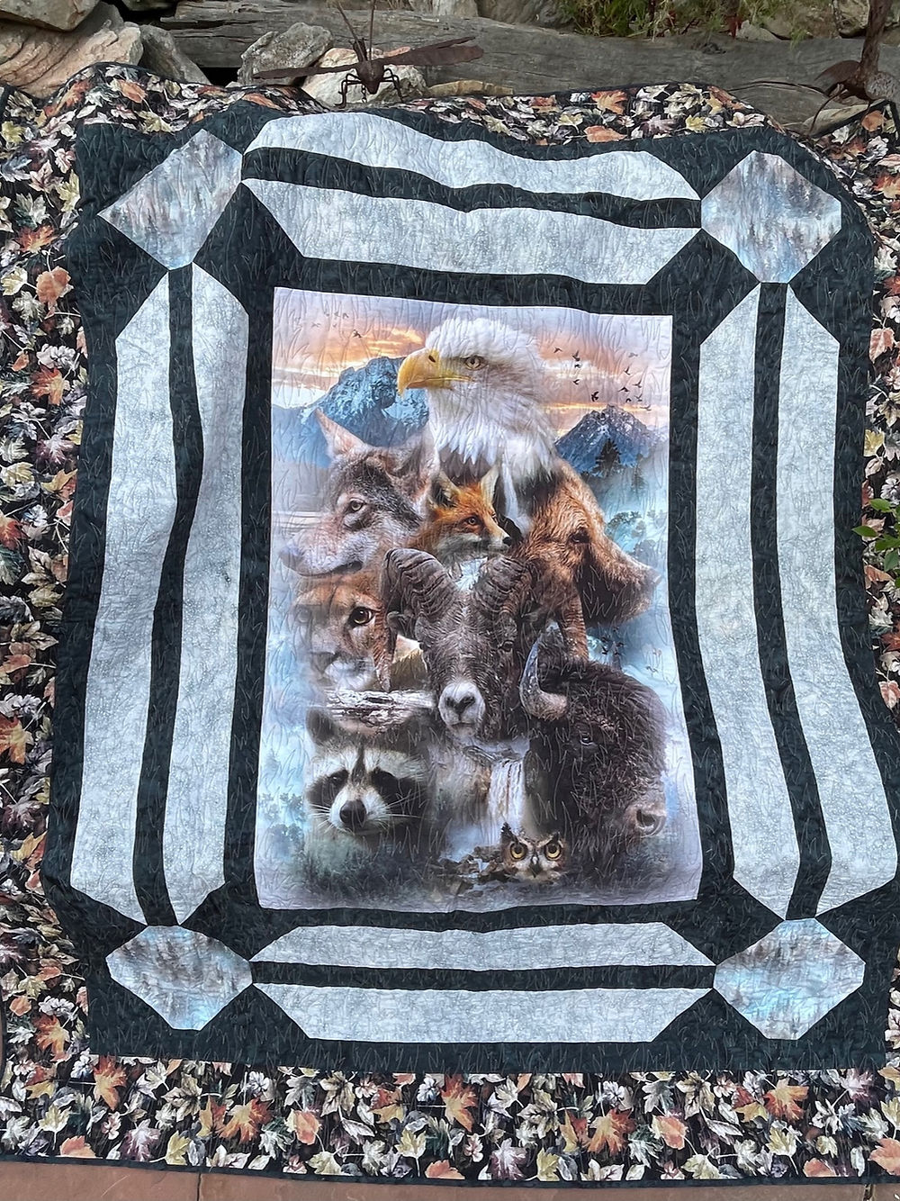 Have a panel you don't know what to do with? anel doesn't fit the pattern you have? liders may be the pattern for you. his quilt allows you to use a panel from 22" to 44" wide and 38" to 48" long! ou cut your panel and work the measurements around it! So fun and what a beautiful quilt you would have.