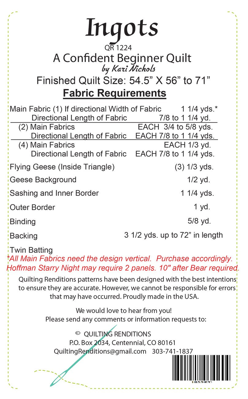 Ingots Quilt Pattern is backordered and will ship as soon as it is back in stock.