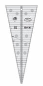 Sew together 16 of these 22 1/2 degree triangles to create a complete circle; 8 to create a half-circle; or 4 to create a quarter-circle. Create Fans, Dresden Plates, etc. up to a finished size of 36 inches. Total ruler length is 18 1/2".