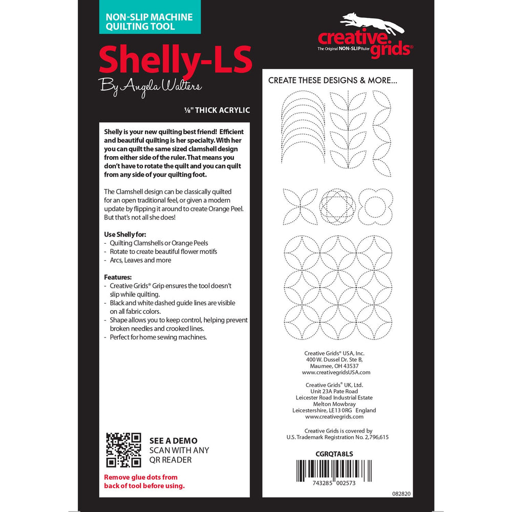 Use Shelley to quilt clamshell designs from either side of the tool - no need to rotate the quilt since you can quilt from any side of the quilting foot. The Clamshell design can be classically quilted for an open traditional feel, or given a modern update by flipping it around to create orange peels. But that's not all she does! Use Shelly for: quilting clamshells or orange peels; rotate to create beautiful flower motifs, arcs, and leaves. This Low Shank version is 1/8 inch thick so it works well on domestic sewing machines. To learn more, view a video demonstration.