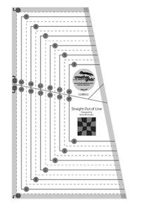 The Straight Out of Line ruler creates unique four-patch blocks with the illusion of curves. Ruler markings make it possible to cut squares from 4 “ 10 inch squares “ and every half-inch in between. The finished size of the pieced blocks is approximately 3/4 inch less than the cut block.