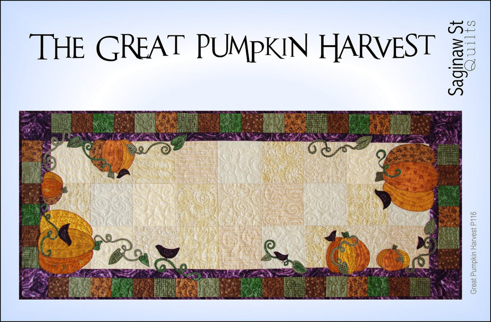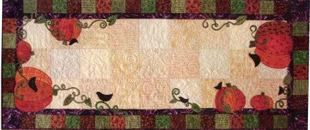 Great Pumpkin Harvest will dress up your table in celebration of fall with a table runner or topper in a blaze of autumn colors. Fabric requirements are adequate to make the small or large table runner or topper. Enjoy!