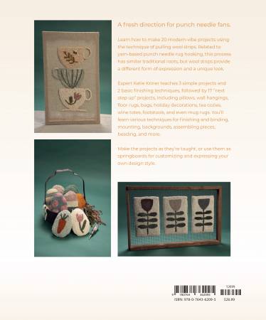 Learn how to make 20 modern-vibe projects using the technique of pulling wool strips. Related to punch needle rug hooking, this process has similar traditional roots, but wool strips provide a different form of expression and a unique look. Whether you're a complete beginner, an established fan of punch needle rug hooking, or at the intermediate level, expert Katie Kriner teaches the process and offers 20 projects for honing your skills, and the designs are a variety of styles, including rustic, primitive, chic, and modern. First enjoy learning about this craft's antique origins, then understand what tools and materials you'll need for creating and working with strips of wool. To get you started on the craft itself, Katie teaches 3 simple projects and 2 basic finishing techniques. This lets you create the 17 "next step up" projects, including pillows, wall hangings, floor rugs, bags, holiday decorations, tea cozy, wine tote, footstool, and even mug rugs. You'll learn various techniques for finishing and binding, mounting, backgrounds, assembling pieces, beading, and more. Make the projects as they're taught, or use them as springboards for customizing and expressing your own design style.