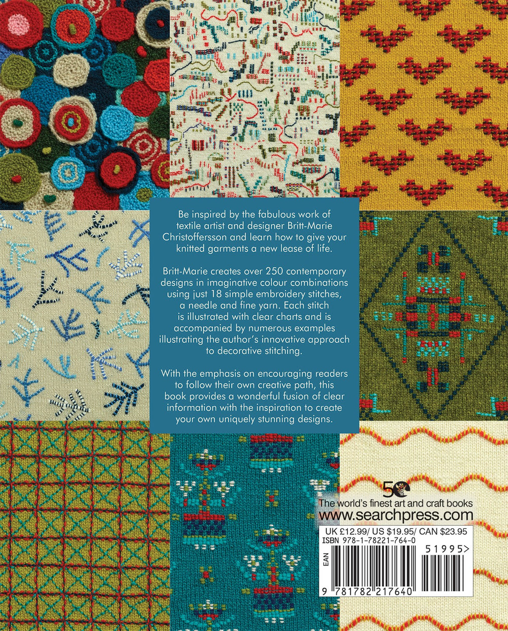 Prepare to be amazed by textile artist and pattern designer Britt-Marie Christoffersson's fantastic work and learn how to use embroidery to give knitted garments a new lease of life. Using simple stitches such as running stitch, couching, blanket stitches and rya knots, Britt-Marie creates a wide variety of patterns that will inspire you to even more creativity.