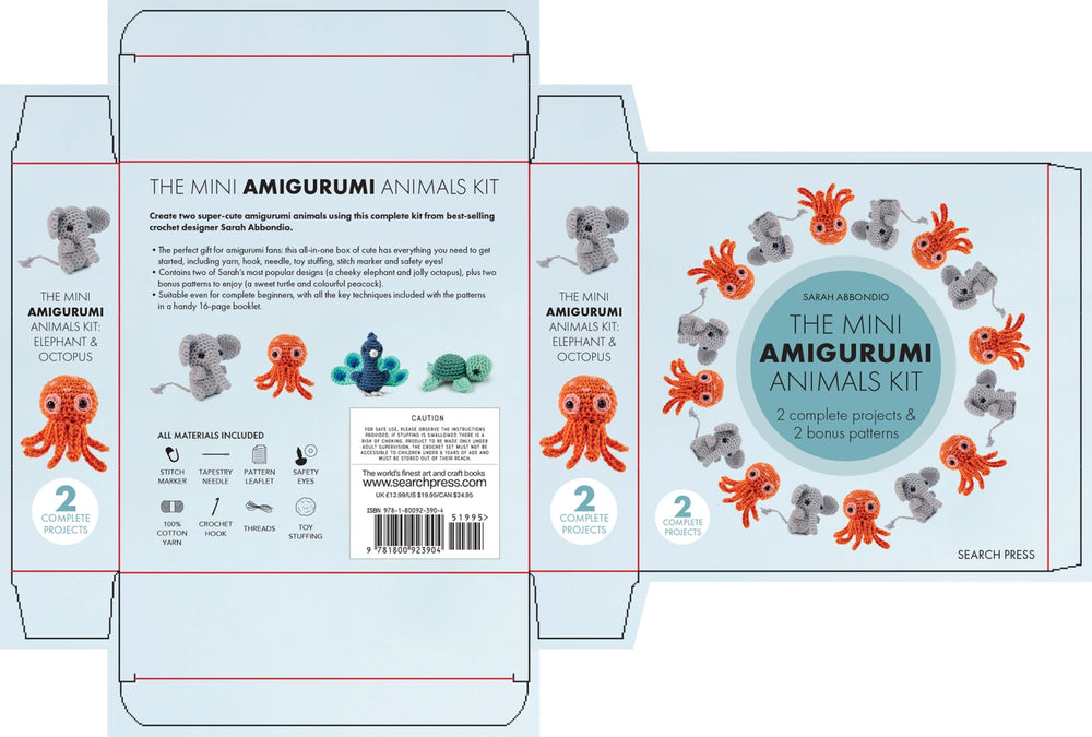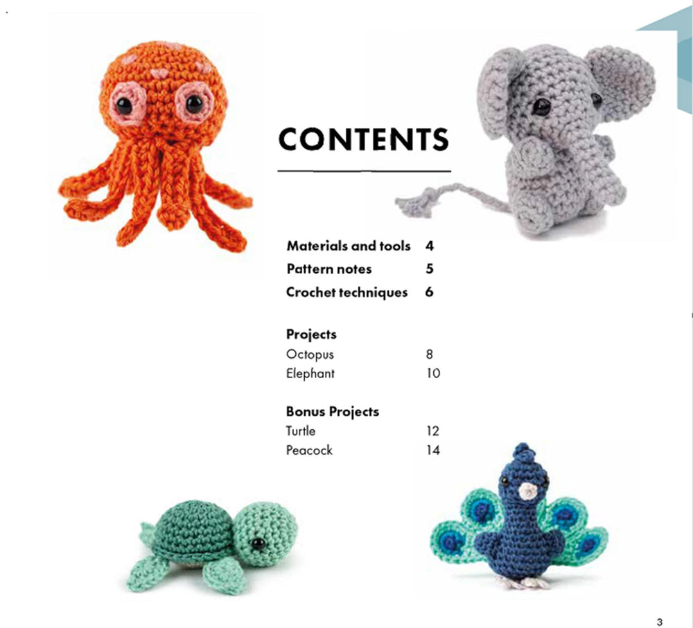 2 popular, adorable animals to crochet: features 2 of Sarah Abbondio's most popular animals from her beloved, quarter-million-selling series (the elephant and octopus), plus 2 bonus patterns (turtle and peacock)