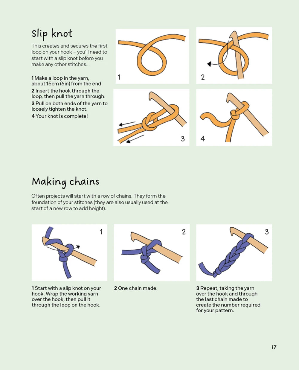 • A beginner-friendly crochet how-to section, explaining every stitch and technique step by step