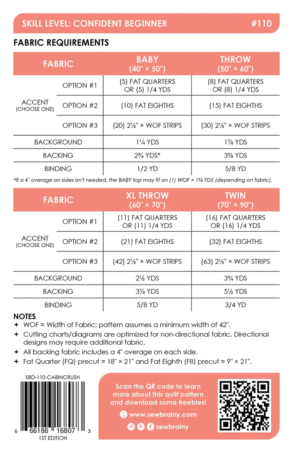 Cabin Crush Quilt Pattern is backordered and will ship as soon as it is back in stock.