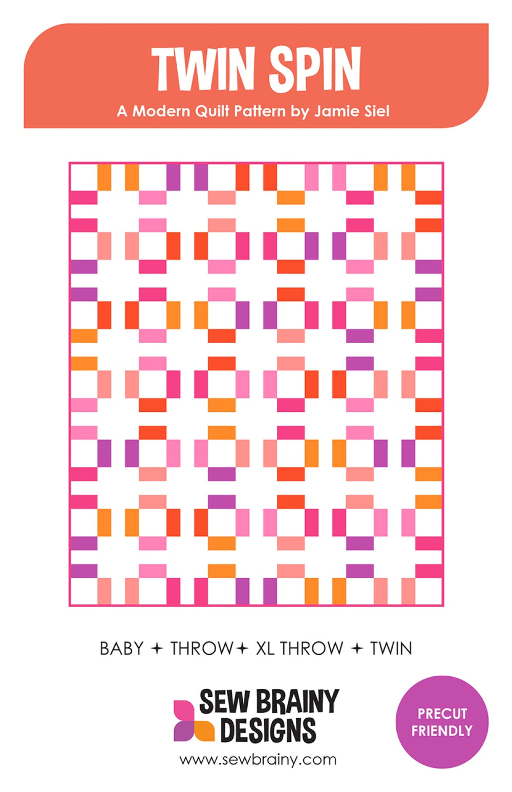 The Twin Spin quilt pattern by Jamie Siel of Sew Brainy Designs is a traditionally pieced modern quilt pattern that is perfect for the confident beginner.