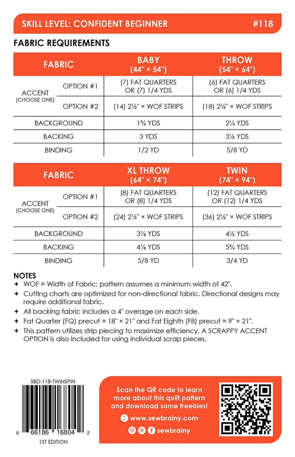 Twin Spin Quilt Pattern is backordered and will ship as soon as it is back in stock.