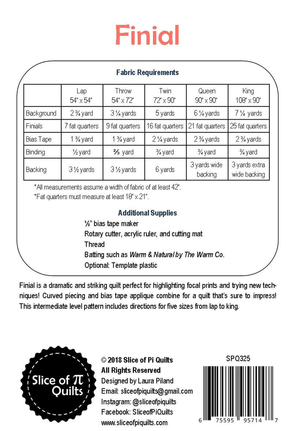 Finial Quilt Pattern is backordered and will ship as soon as it is back in stock.