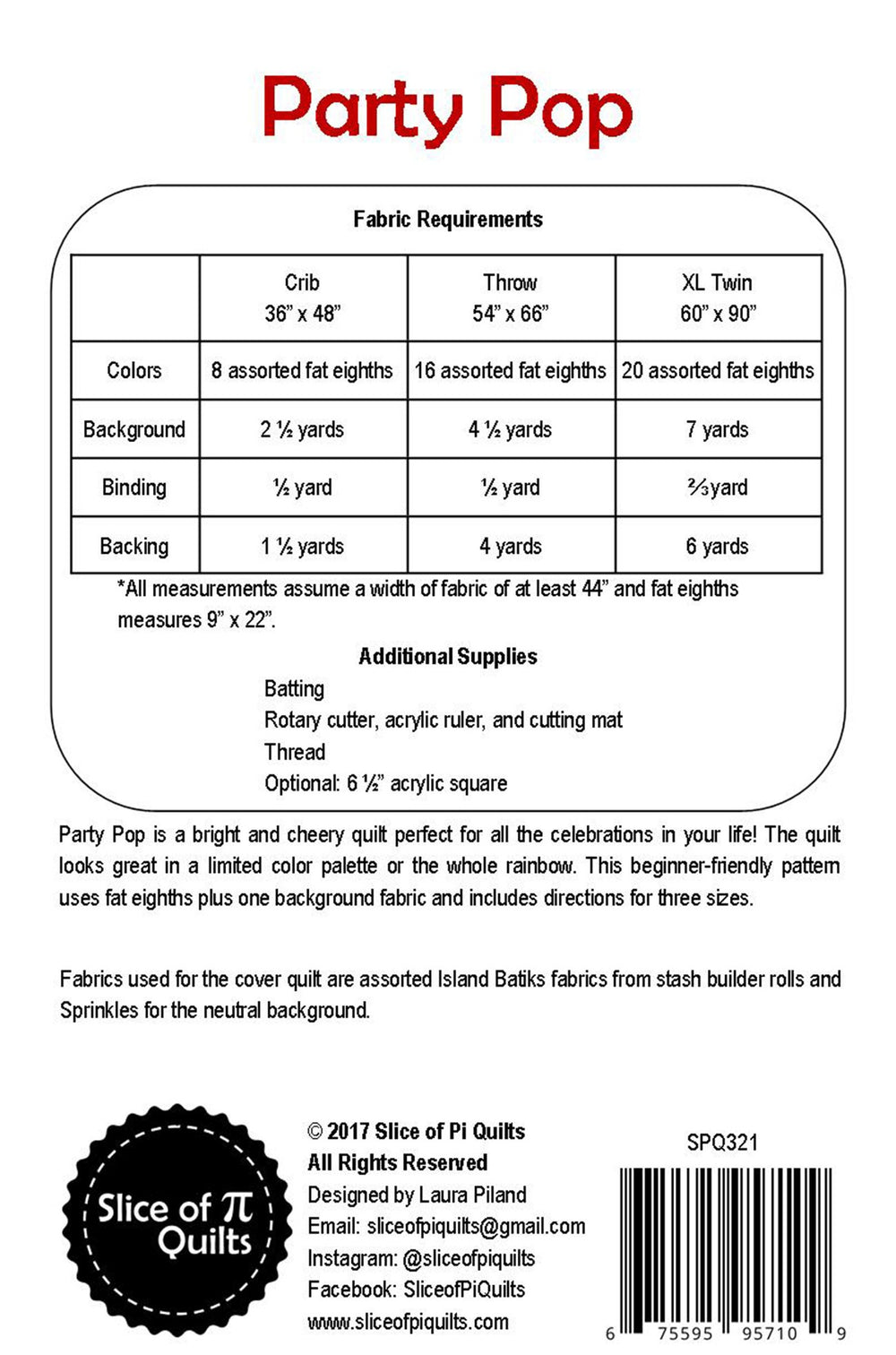 Party Pop Quilt Pattern is backordered and will ship as soon as it is back in stock.