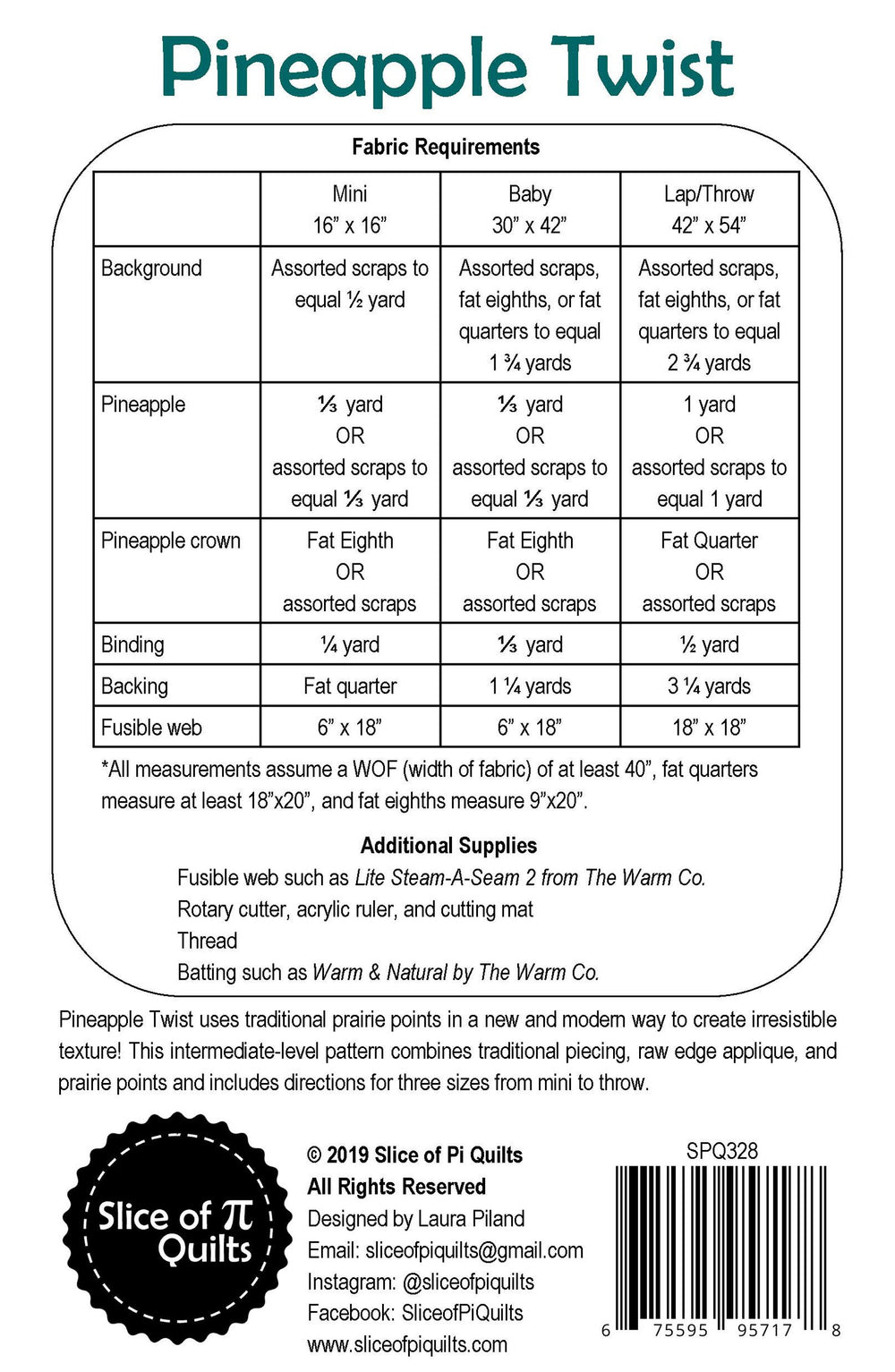 Pineapple Twist Quilt Pattern is backordered and will ship as soon as it is back in stock.