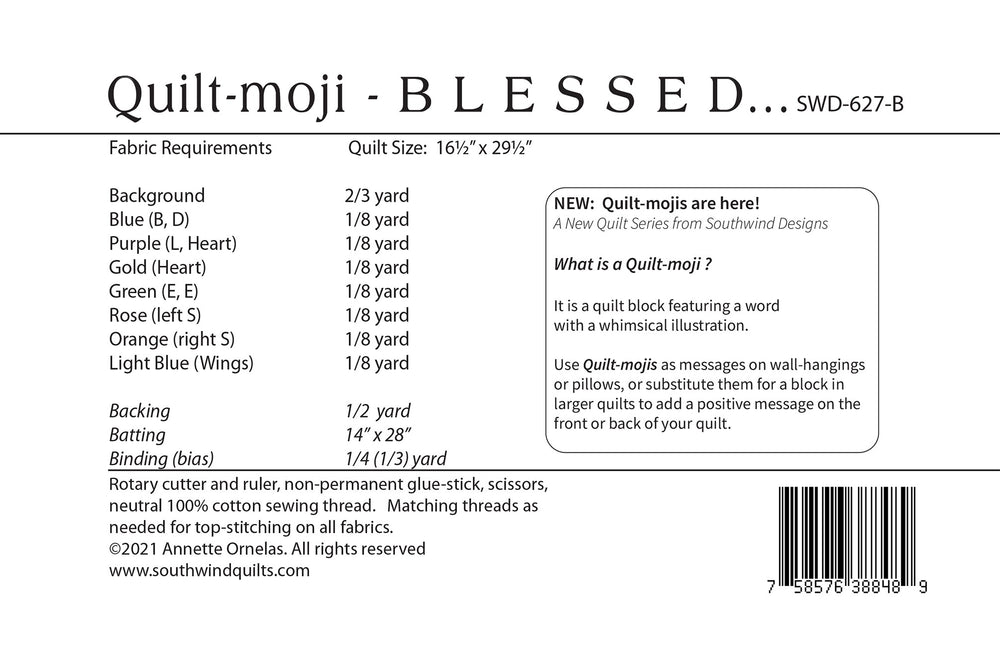 Quilt-moji: BLESSED is backordered and will ship as soon as it is back in stock.