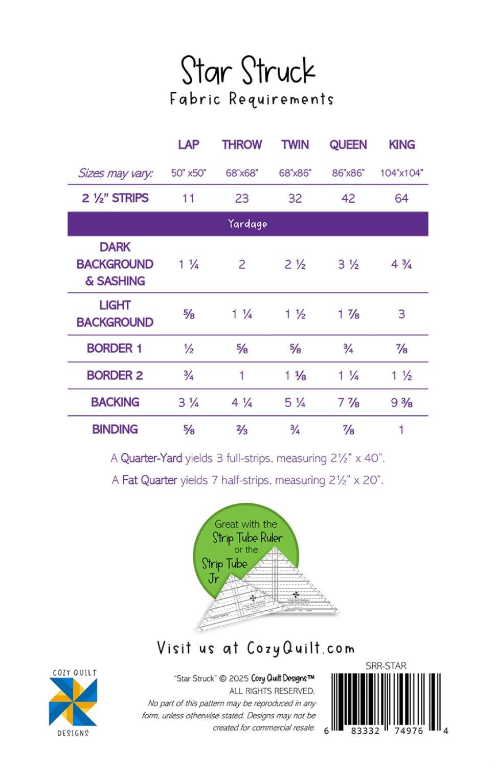 Stars are always a favorite, and this is our favorite star quilt! Use coordinated fabrics from a collection or scrappy fabrics from your stash. There are two background fabrics that give the quilt dimension!
