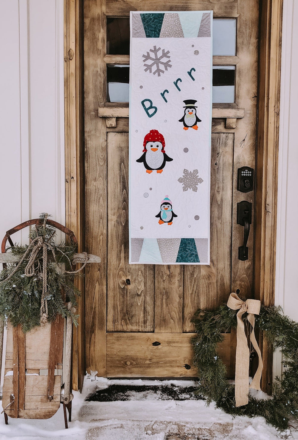These cute little penguins can stay out all winter long. Finished quilt measures 16" x 50"