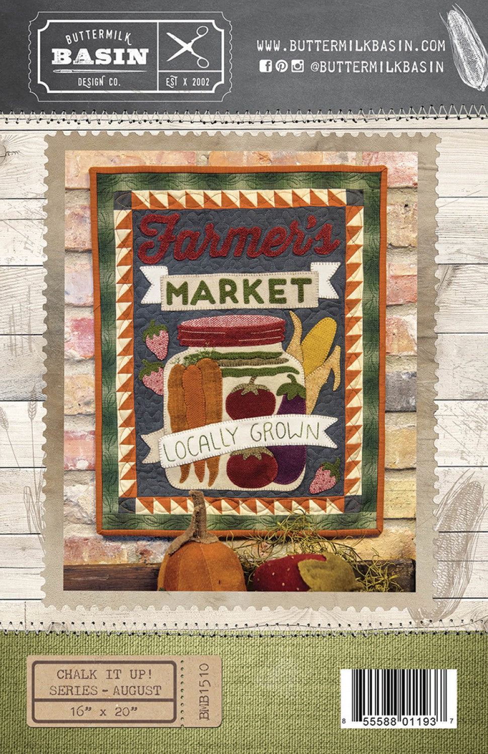 The Chalk It Up Series is a great wool applique on cotton project to display in a frame or bind it to hang any where you'd like a touch of the popular chalkboard look! It measures 16in x 20in. The August design features a Farmers Market theme with summer produce that is in abundance at this time of the year.