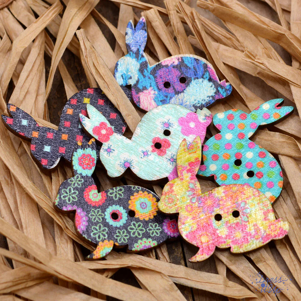 These buttons feature delightful bunny shapes, perfect for springtime projects, baby items, or any design needing a playful touch.
