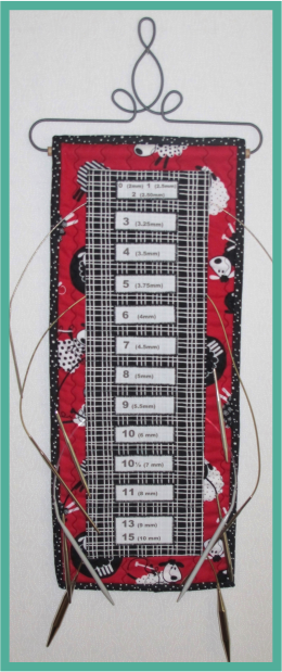 Tired of your circular needles being curly and unruly?  Me too!  So I whipped up a cute little storage hanger to fix that problem.  Store your circular knitting needles in this hanger and they’ll be ready for use when needed! Approximate finished size: 8" x 19½", excluding the hanger.