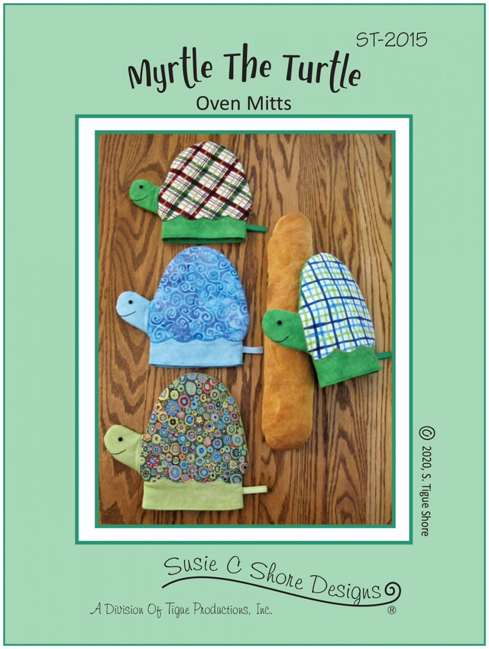 Sew up cute turtle Oven Mitts! Fun for everyone! Super Quick & Easy! Approximate finished size 10” x 9”