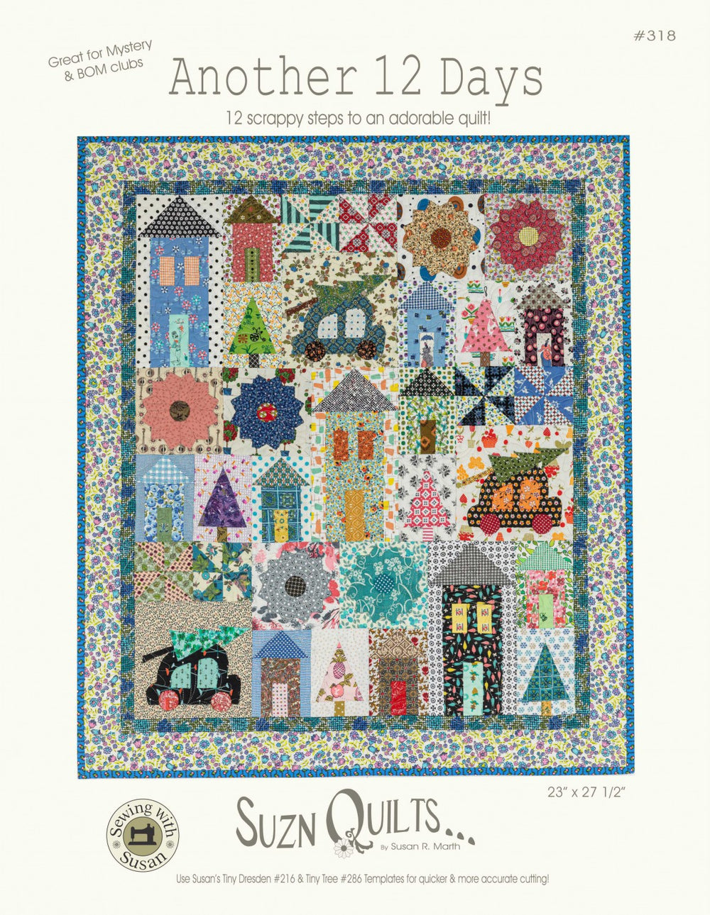 A cute & clever 12-step little quilt perfect for a mystery or block-a-day, week or month. Pattern includes detailed Tiny Dresden plate assembly instructions as well as full-size, reversed, appliqué templates.