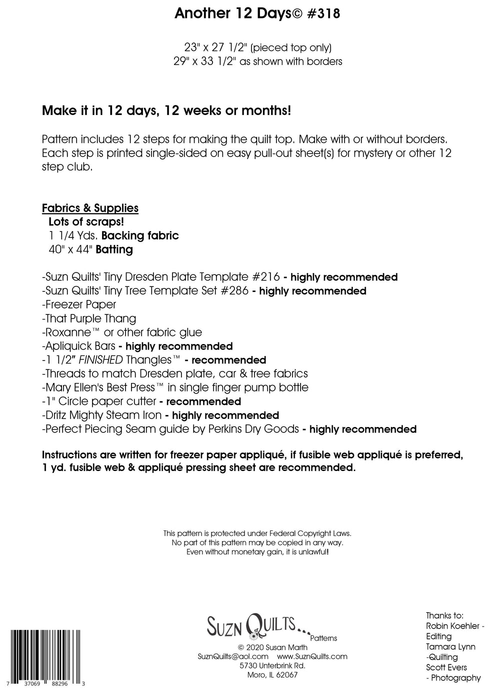 Another 12 Days Quilt Pattern is backordered and will ship as soon as it is back in stock.