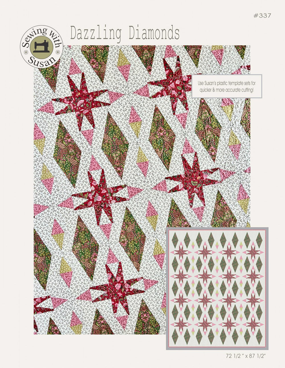 Any fabric collection will be lovely! The plastic templates will make this pattern & templates your favorites. Look for more of my patterns using the same template sets. Finished quilt size is 72.5 in. x 87.5 in.