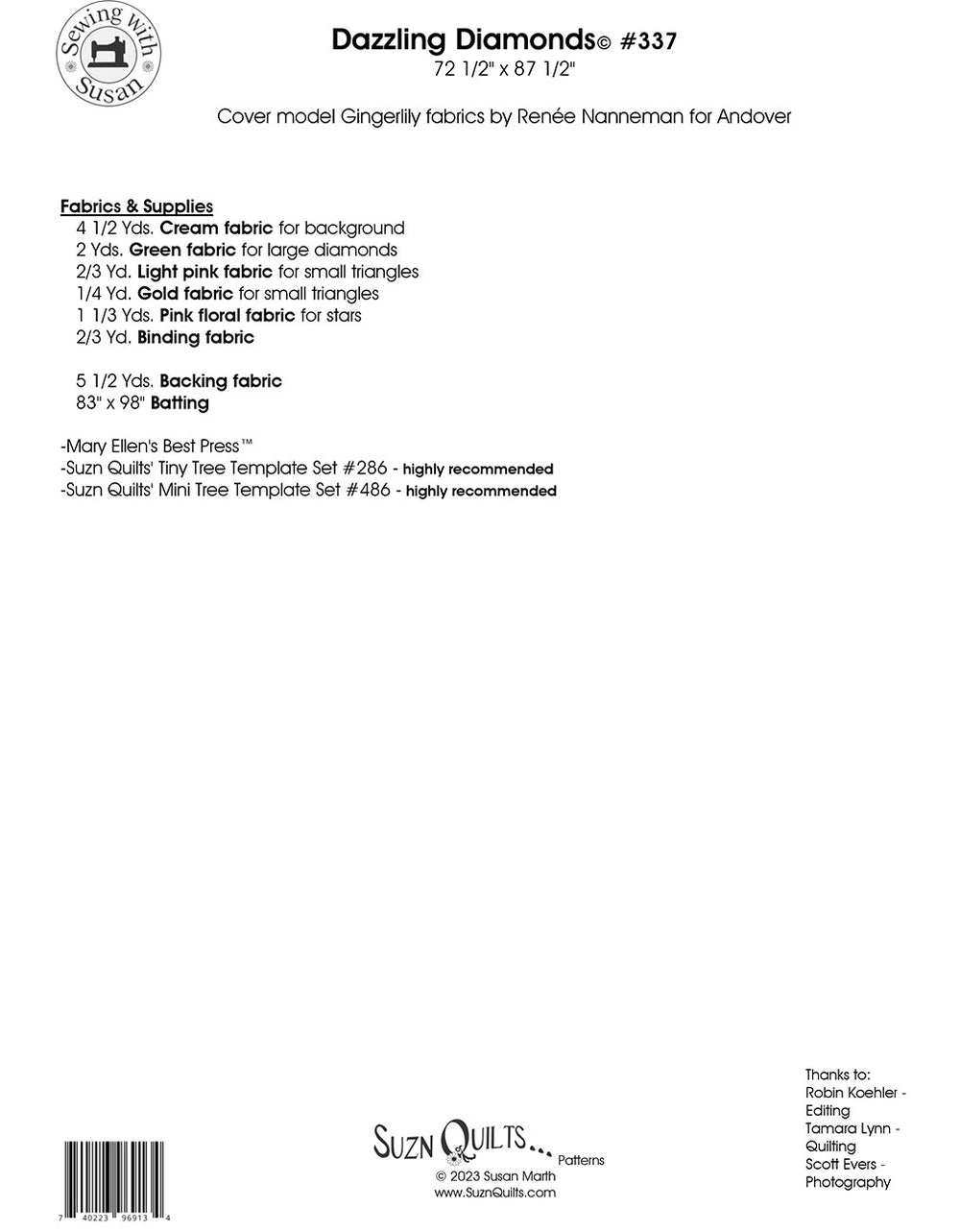 Can you see the trees??? NO! That's because the trees you'll cut for this quilt don't look at all like trees, but instead diamonds & stars. Don't be fooled, you'll still be able to use your Tiny #286 & Mini #486 Tree template sets for quick & accurate cutting. This will make a perfect lap quilt.