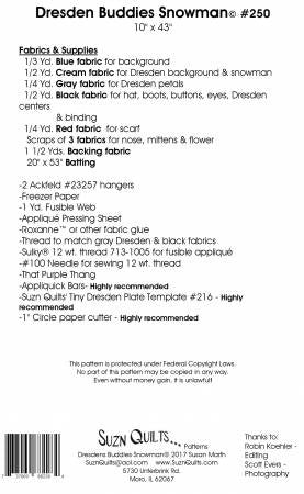 10in x 43in Snowman quilt that incorporates Tiny Dresden plates to hang all winter long.