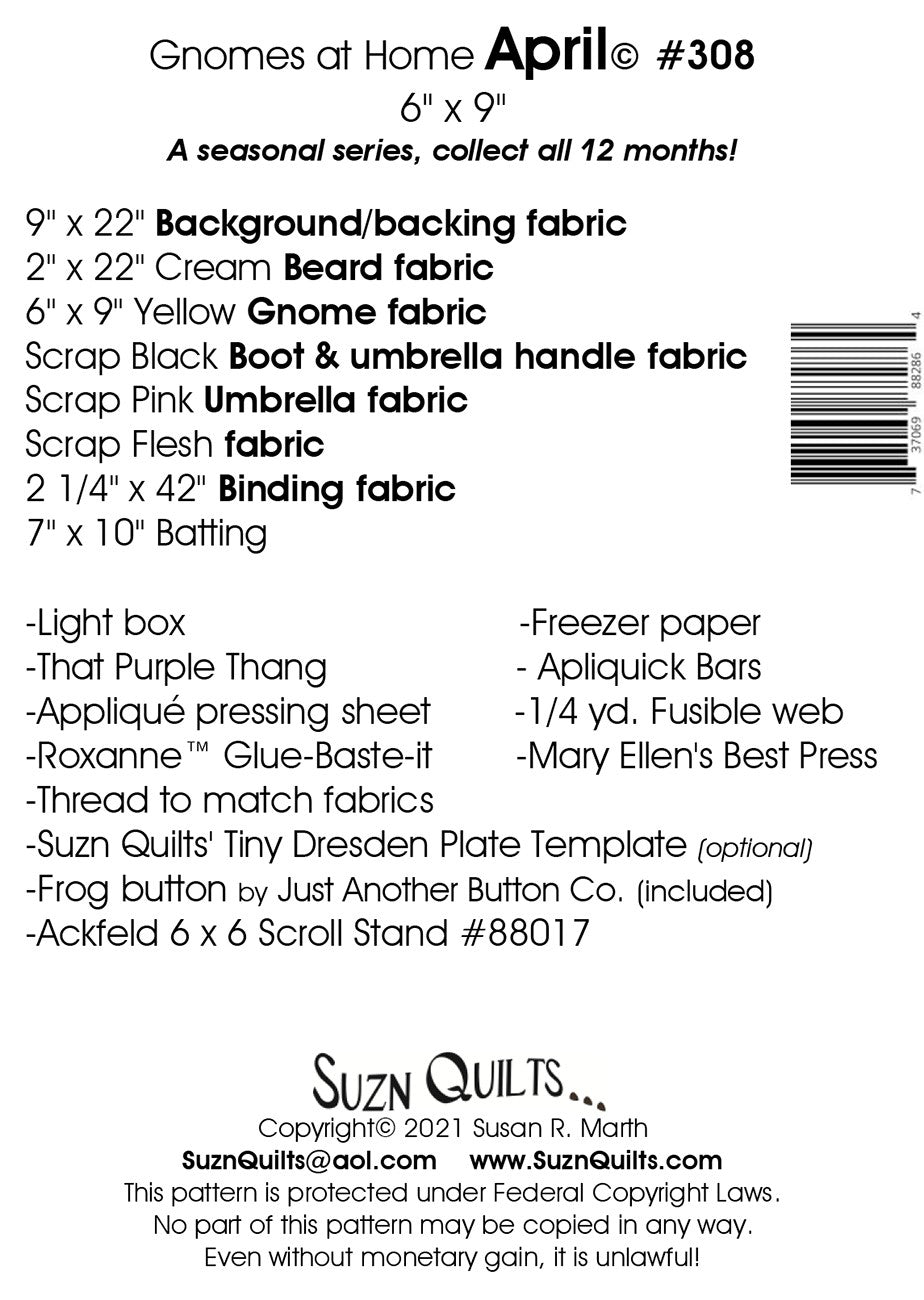 Gnomes At Home April Quilt Pattern is backordered and will ship as soon as it is back in stock.