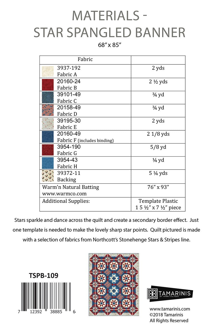 Stars sparkle and dance across the quilt and create a secondary border effect. Just one template is needed to make the lovely sharp star points. This lovely sparkler measures 68" x 85".