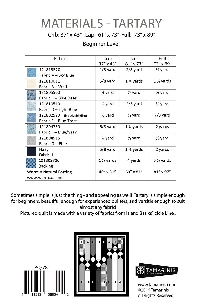 Simple, clean, elegant - and perfect for beginners to experienced quilters! Choose from three sizes: Crib (37" x 43"), Lap (61" x 73") or Full (73" x 89").