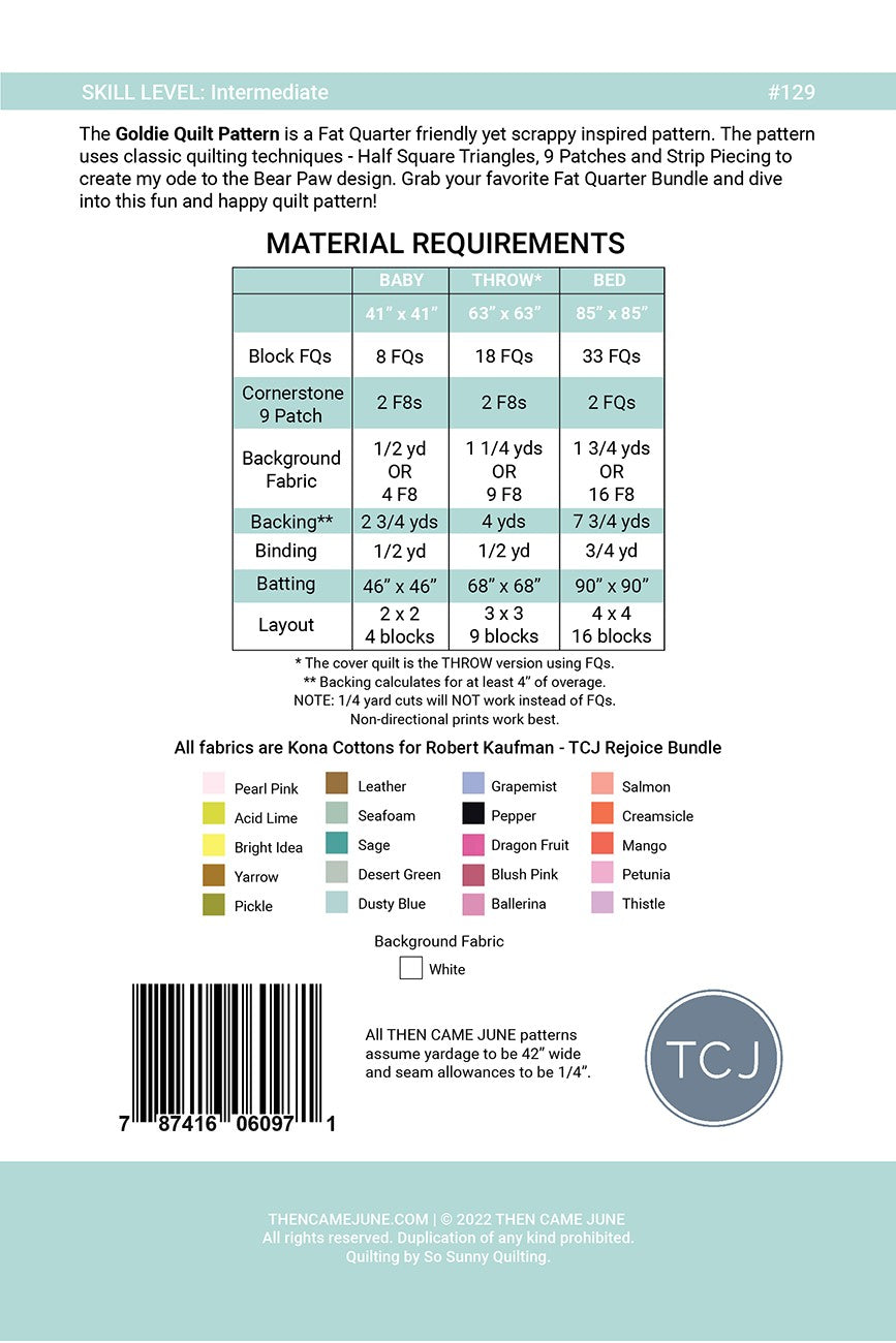 Goldie Quilt Pattern is backordered and will ship as soon as it is back in stock.