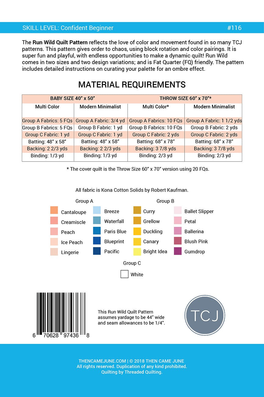 Run Wild Quilt Pattern is backordered and will ship as soon as it is back in stock.