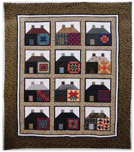 All twelve houses are exactly alike in design but all use different Japanese fabrics. The small 6� Cherrywood blocks are intended to resemble Amish-style quilts.