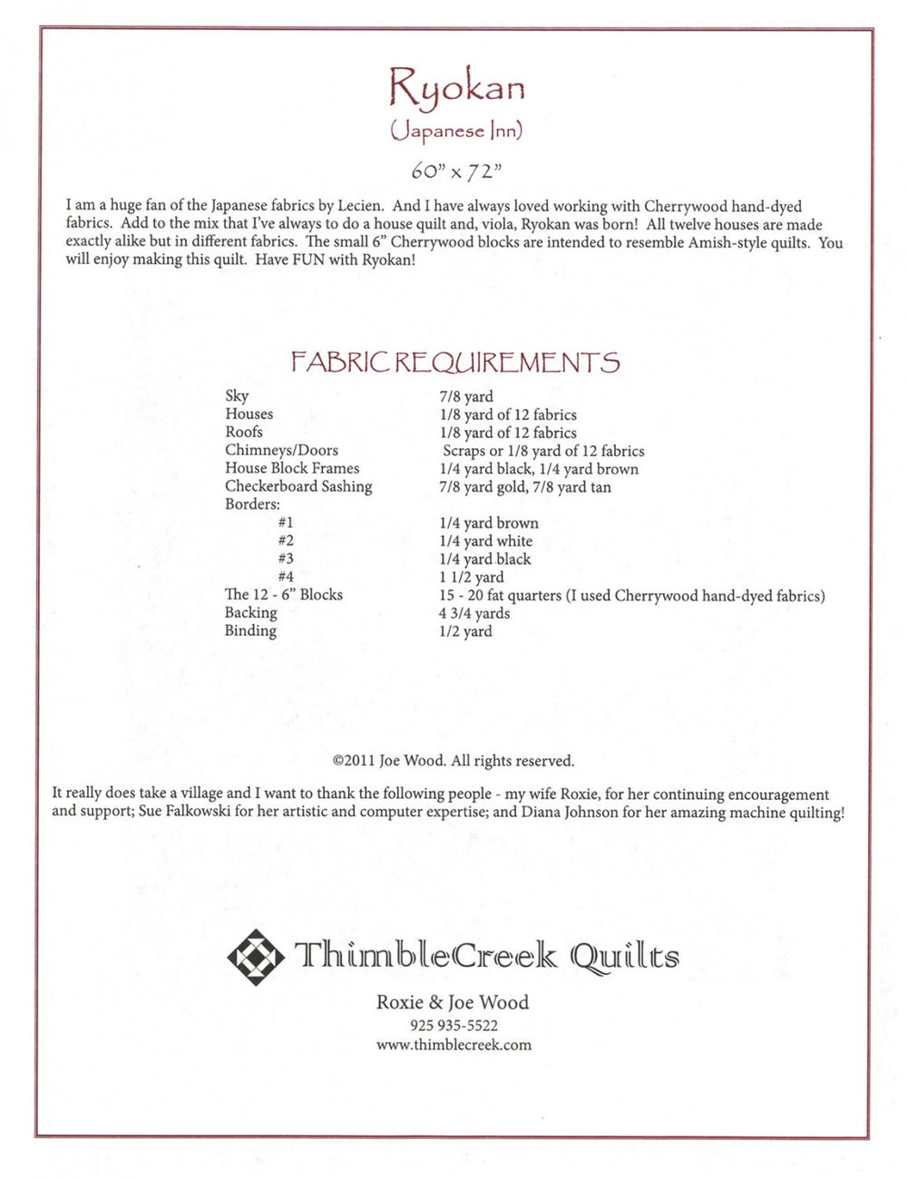 I have always working with the hand-dyed fabrics from Cherrywood. Add to that mix that Ive always wanted to do a house quilt - and, viola, Ryokan was born!