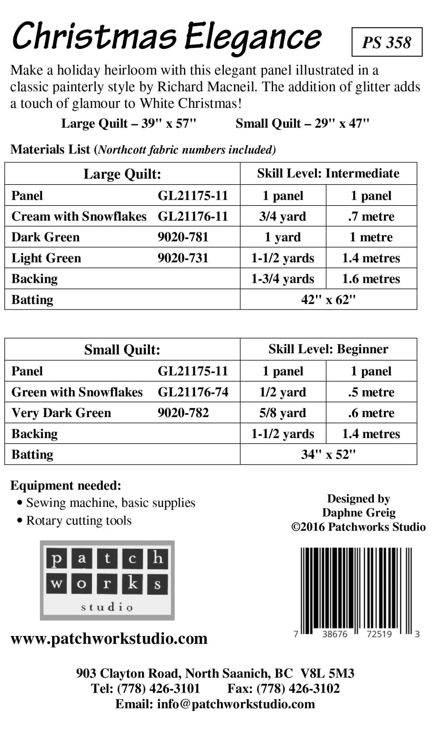 Skill Level: Confident Beginner. Fabric: White Christmas by Northcott
