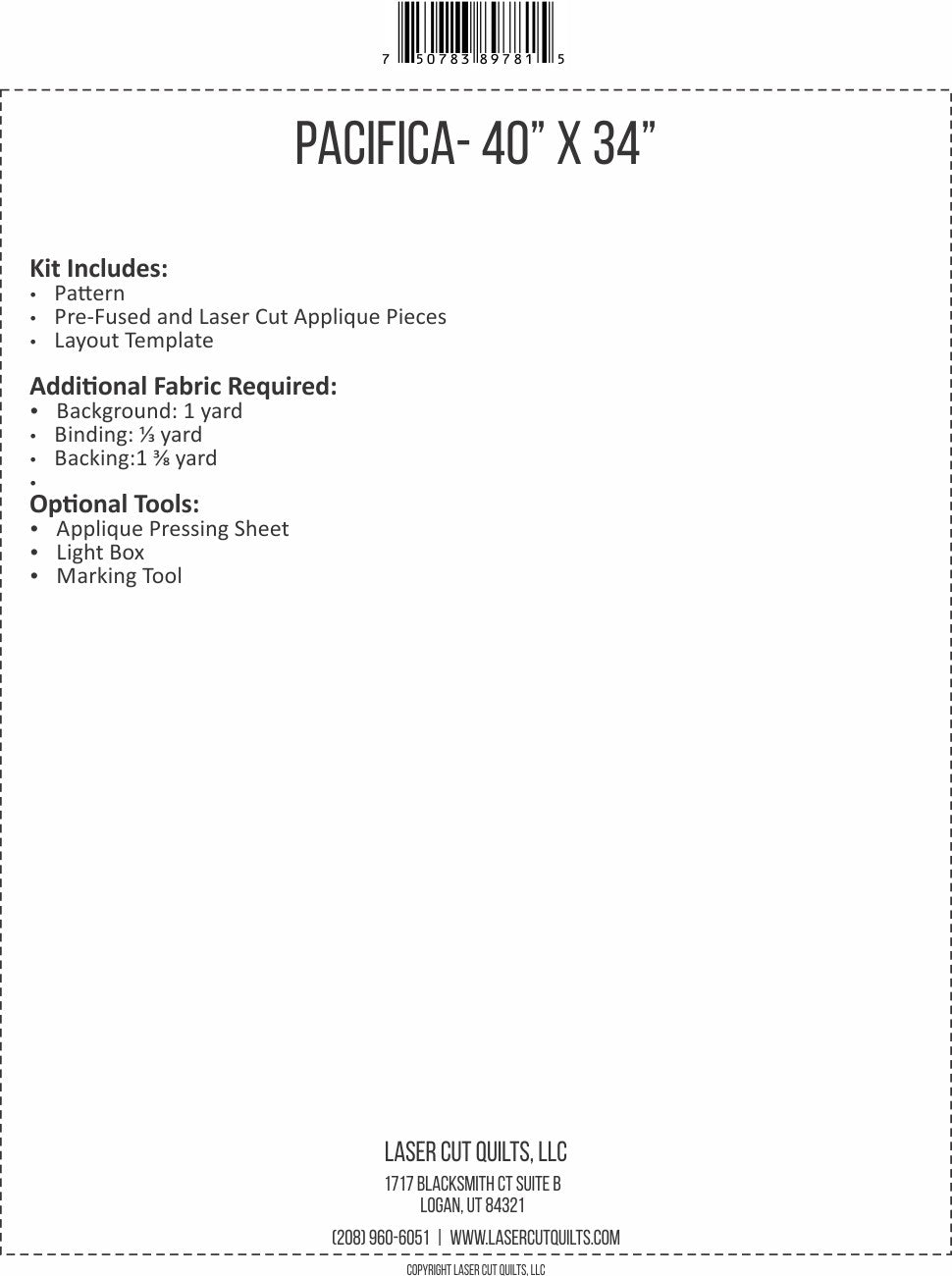 Pacifica Quilt Pattern is backordered and will ship as soon as it is back in stock.