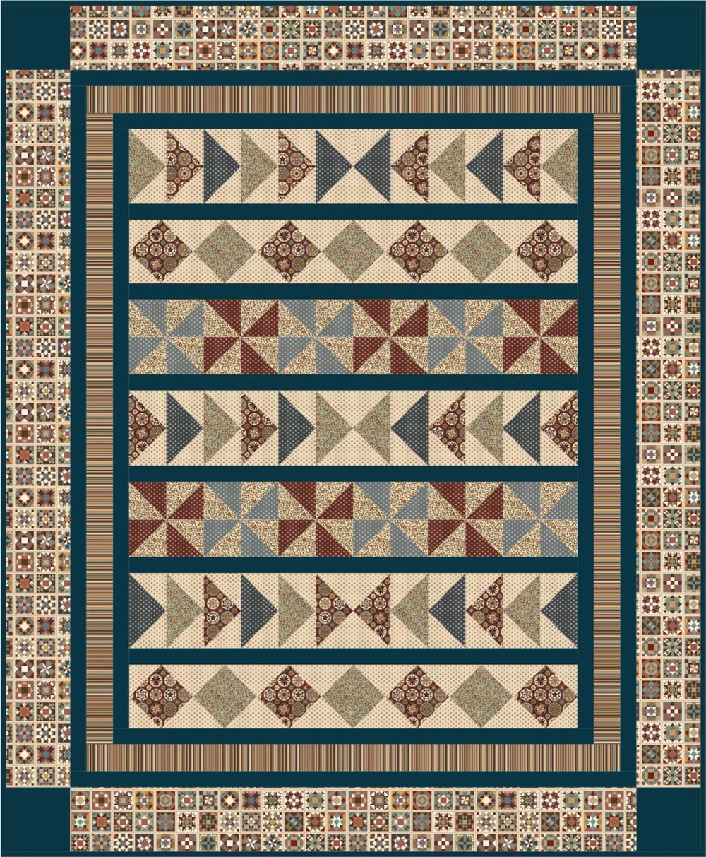 These beautiful quilts were made using the “Heritage Quilting” line of fabric from Northcott. The panel quilt measures 62″ x 74″ and the row quilt measures 66″ x 80″. The row quilt could easily be made using any fabric selection and would look especially stunning made in batiks! This well written, easy to follow pattern features full colour diagrams!