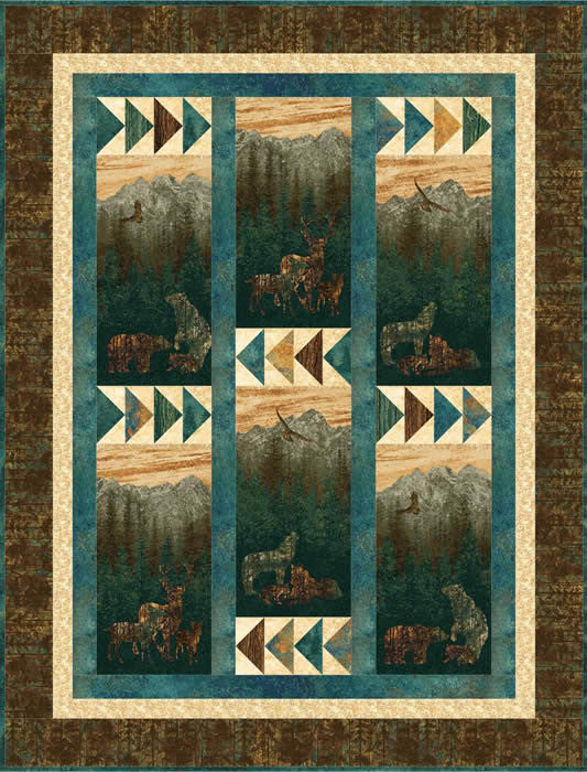 This easy-to-make lap quilt uses Northcott's "Stonehenge - Aspen Ridge" line of fabrics. Using two of the panels and a selection of the co-ordinates, this quilt goes together very quickly!  Size: 60" x 75"