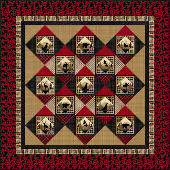 This beautiful flannel quilt is made with the Northwood Flannel line of fabric from Northcott. This version is made using the red and tan colorway. Size: 93" x 93"