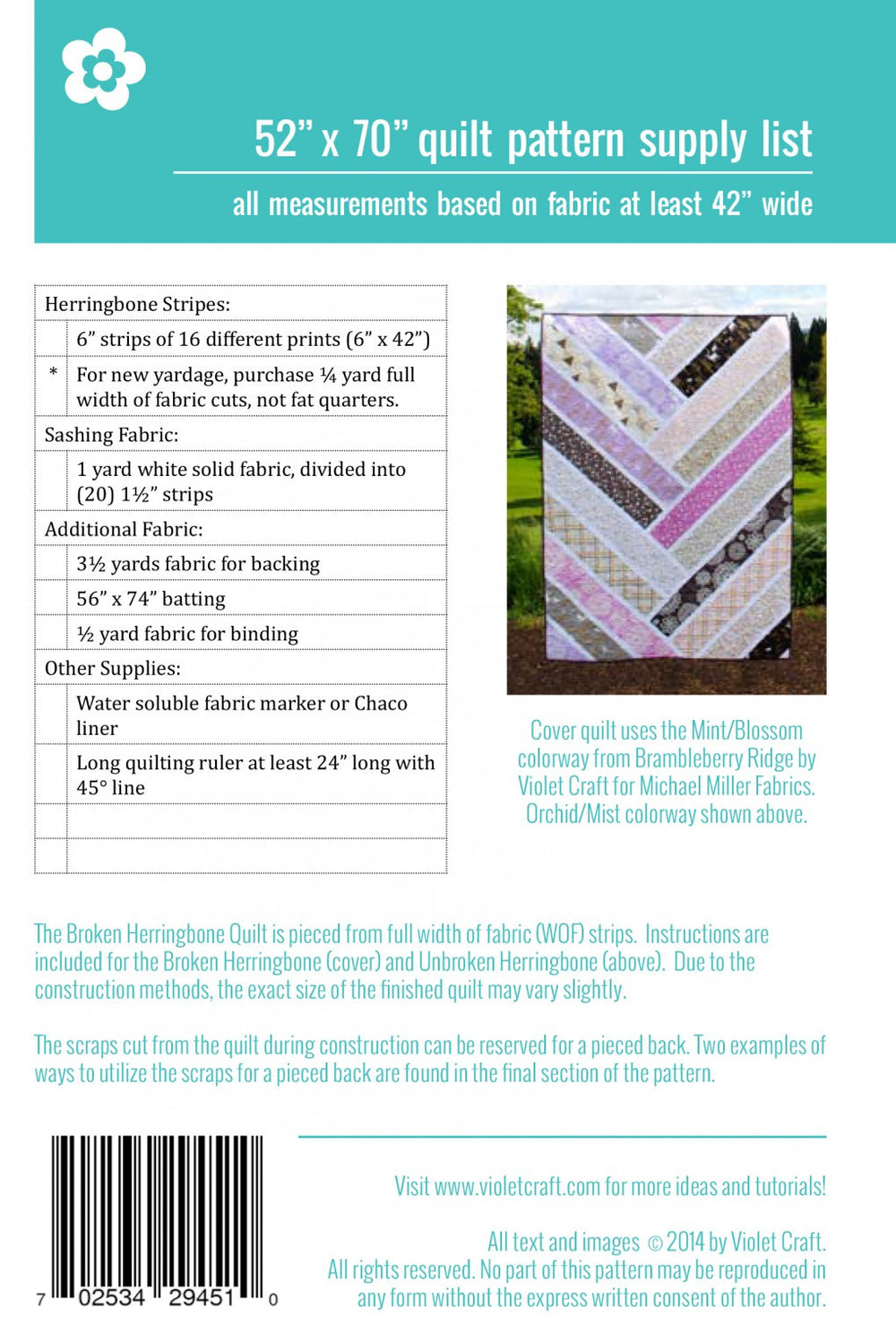 Instructions are included for The Broken Herringbone (cover) and The Unbroken Herringbone (back).
