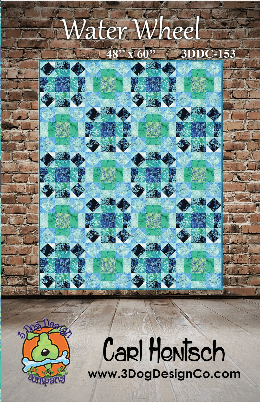The placement of the colors and values create two different Water Wheel blocks that tumble across the surface in watery blue and green prints.