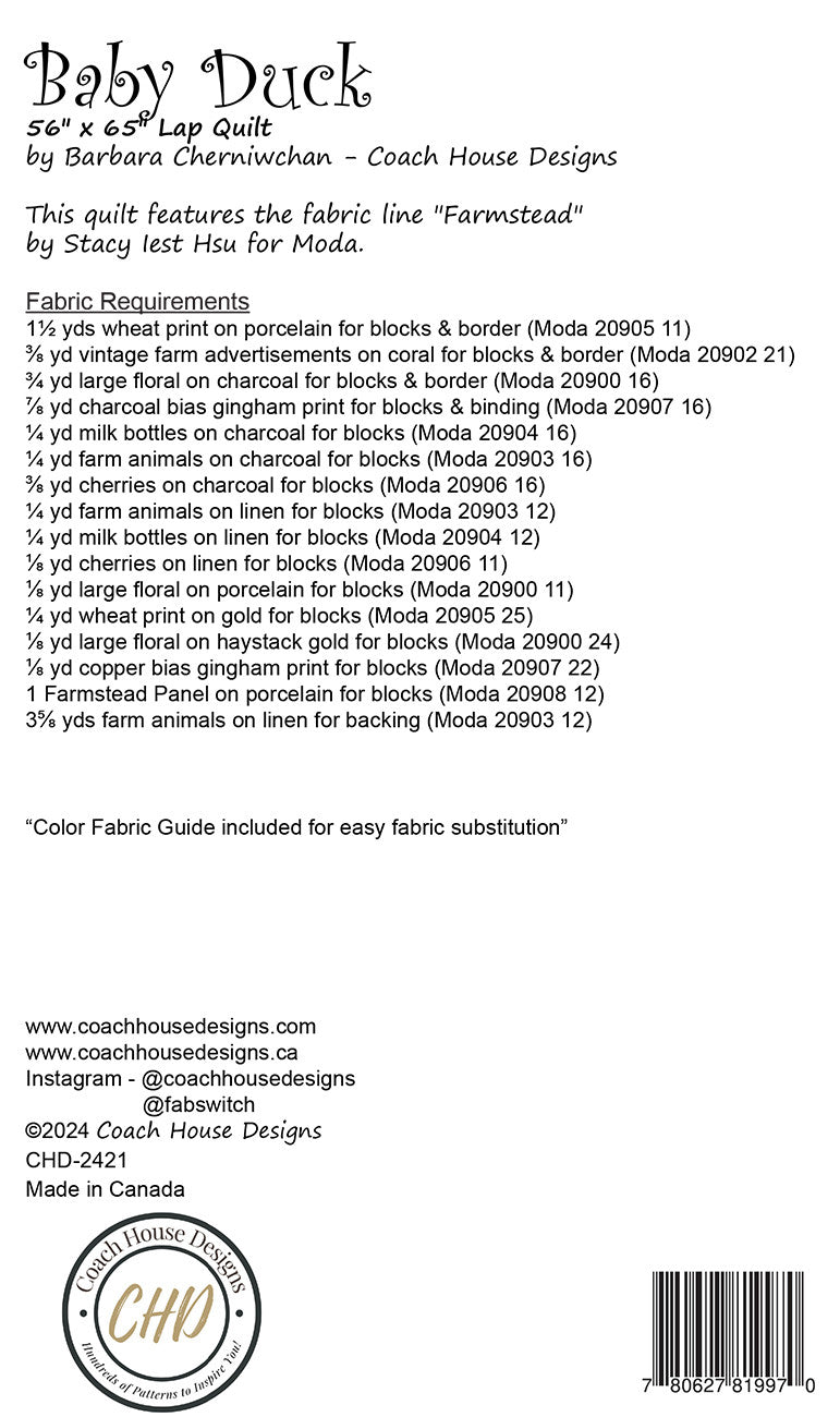 Baby Duck Quilt Pattern is backordered and will ship as soon as it is back in stock.