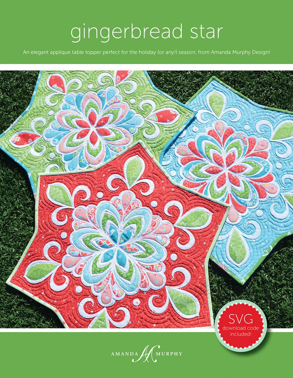Gingerbread Star is an elegant table topper design perfect for celebrating the holiday (or any!) season. The sample on the cover features Amanda Murphy’s Christmas Magic line for Contempo of Benartex. This 24in x 20-1/2in design is so fun to put together that you won't want to stop at just one!